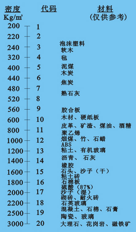 可測量材料:各材料比重0.4-3.0之間的建筑材料,比重選擇,共分20檔