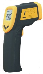 紅外測溫儀測量物體表面溫度,其光學(xué)系統(tǒng)匯聚被測物體的紅外輻射能量,匯聚到的能量聚焦在光電探測器上并轉(zhuǎn)變?yōu)橄鄳?yīng)的電信號,該信號經(jīng)電路轉(zhuǎn)換變?yōu)樽x數(shù)顯示LCD屏幕上,本機配備的激光燈能有效的對準被測物體及提高測量精度。