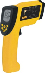 紅外測(cè)溫儀測(cè)量物體表面溫度,其光學(xué)系統(tǒng)匯聚被測(cè)物體的紅外輻射能量,匯聚到的能量聚焦在光電探測(cè)器上并轉(zhuǎn)變?yōu)橄鄳?yīng)的電信號(hào),該信號(hào)經(jīng)電路轉(zhuǎn)換變?yōu)樽x數(shù)顯示LCD屏幕上,本機(jī)配備的激光燈能有效的對(duì)準(zhǔn)被測(cè)物體及提高測(cè)量精度。