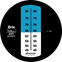 MASTER-4α has a measuring range between the MASTER-2α and the MASTER-3α (measurement range Brix 45.0 to 82.0%). MASTER-4α can be used for high 濃度 samples, such as condensed milk, concentrated fruit juice, jam, marmalade, liquid sugar, etc. It is an Automatic Temperature Compensation (ATC) model with water resistant feature (IP65).