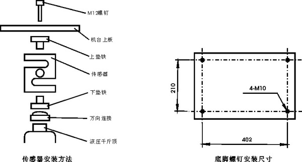注意:安裝時請居中安裝傳感器、機臺、千斤頂。測試使用時,拉壓負荷力的方向應(yīng)在機臺中心。