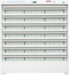 該裝置是我公司專門為扣式鋰離子電池化成與分容等要求而設(shè)計制造的專利技術(shù)產(chǎn)品(專利號:ZL 97 2 08661. 7),該檢測裝置由主要由普通PC機(計算機)、通訊接口及電池檢測柜構(gòu)成,電池檢測柜包括夾具、恒流恒壓源、寄存控制電路、采樣電路、單片機和控制面板等組成。該檢測裝置是一個二級控制系統(tǒng),上位機為普通PC機,一臺上位機可同時控制多達15臺的下位機,可完成對下位機的起動工作、過程監(jiān)測、監(jiān)控數(shù)據(jù)采集、存儲、分析及報表輸出等多種功能。