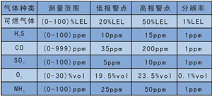 ◆ 檢測氣體: 可燃氣體、H2S、CO、O2(毒性氣體的傳感器種類可更換)