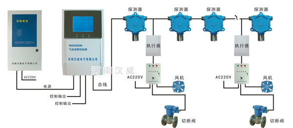 KB2000N型氣體報(bào)警控制器是我公司研制的總線式多點(diǎn)監(jiān)控氣體報(bào)警系統(tǒng)。由KB2000N型氣體檢測(cè)控制主機(jī)和TC200系列氣體探測(cè)器構(gòu)成,用于檢測(cè)環(huán)境空氣中氣體的濃度,可帶多個(gè)檢測(cè)探頭,并同時(shí)對(duì)多點(diǎn)進(jìn)行集中控制。本系統(tǒng)采用微處理器作為控制單元,高精度進(jìn)口電化學(xué)傳感器作為檢測(cè)變送器,靈敏度高,響應(yīng)速度快。當(dāng)環(huán)境中檢測(cè)到氣體的濃度達(dá)到或超過(guò)預(yù)置報(bào)警值時(shí),控制器立即發(fā)出聲光報(bào)警,以提醒及時(shí)采取安全措施,并控制驅(qū)動(dòng)排風(fēng)或其他外設(shè)動(dòng)作,防止中毒事故,發(fā)生爆炸及火災(zāi)發(fā)生,從而保障生命,財(cái)產(chǎn)的安全。