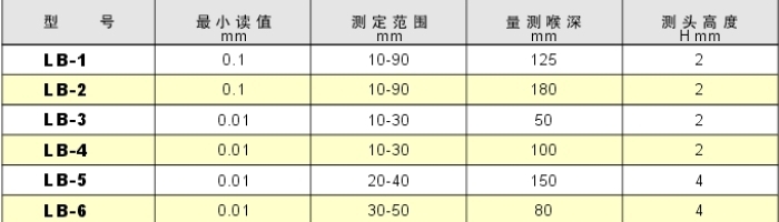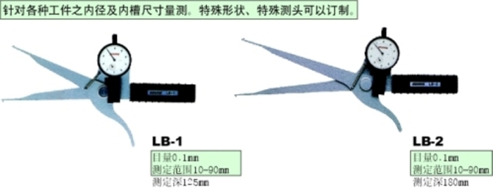 - 關(guān)鍵參數(shù):LB-1 針盤式內(nèi)測卡規(guī).測量范圍:10-90MM,最小讀數(shù):0.1MM.測量喉深:125MM,測頭高度:2MM