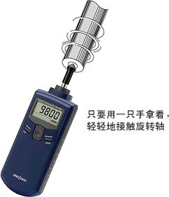 只要用一只手拿著,輕輕地接觸旋轉(zhuǎn)軸,就可以在顯示器上得到直讀轉(zhuǎn)速r/min的測量結(jié)果。另外,與周速環(huán)組合,可以測量線速度 m/minmm/s。