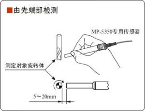 齒科機械的旋轉(zhuǎn)體或纖維工業(yè)機械的高速主軸等高速旋轉(zhuǎn)體,以及機床的高速馬達(dá)的自身之轉(zhuǎn)速等,只要把電磁式傳感器靠近其旋轉(zhuǎn)軸,就可以從鉆頭等上齒的凹凸形狀,在一般的旋轉(zhuǎn)機械上磁化,非接觸地方便地直讀顯示轉(zhuǎn)速r/min。