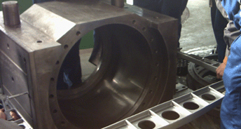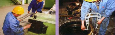 軋輥軸承箱與軋機牌坊配合通過安裝在軋輥軸承箱體外面的襯板來調整配合間隙,軋機工作過程中其磨損程度是不均勻的,通常邊部磨損嚴重而中間磨損很少。用一般千分尺測量檢查時,由于尺架中部大圓弧的干涉,只能測量軸承箱的邊部尺寸而,而中部尺寸測量不到,致使檢測結果失真。使用仿型外測量千分尺,由于它們形狀和尺寸根據軋輥軸承箱制作,就可以較好的解決這個問題。 |