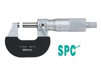 快進型外徑千分尺,1mm 心軸螺紋間距易于快速設(shè)置。套管上刻有 100 條刻度,可直接對測量值進行讀數(shù)。棘輪套管可保持恒定測力。帶有一個基準(zhǔn)桿 (不包括 25mm 型)。帶有SPC 數(shù)據(jù)輸出(293 系列)。