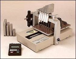本儀器基于以下汽車標(biāo)準(zhǔn)設(shè)計(jì)(福特 BN 108-13; 通用 GMN3943; 戴姆勒克萊斯勒 LP-463DD-18-01), 通常有五個(gè)觸點(diǎn)。 儀器含有氣動(dòng)和可安裝樣品的傳動(dòng)裝置。傳動(dòng)裝置直線行走,有一個(gè)旋鈕控制??捎糜谝粋€(gè)或多個(gè)樣品通行檢測 。電子計(jì)時(shí)器顯示速度,可以通過改變空氣壓力來控制這個(gè)速度。 儀器支架支持五個(gè)獨(dú)立的花鍵桿,這樣可以為磨針加載連續(xù)垂直的力(磨針可互換,直徑1.0mm或7.0mm,為半圓型頭)。支架的手柄可控制它懸臂的高低,五個(gè)支撐架可使一個(gè)或更多懸臂移動(dòng)到不礙事的地方,從而觸碰不到測試中的樣本。 不同的重量塊狀在懸臂的上端,保證作用在樣品表面上的是標(biāo)準(zhǔn)大小的力。每套儀器含有的重量快有: 2N, 3N, 4N, 5N, 6N, 7N, 10N, 15N 和 20N 。另外還可購得8N, 13N, 18N 和 25N的重量塊。. 盡管通常情況下22mm以內(nèi)厚度的扁平樣品都能測,但前提是樣品邊緣不要太厚,樣品不要太軟或固定得足夠好。標(biāo)配里含有帶彈簧的樣品固定裝置,它可以固定在樣品臺的邊緣,以獲得更好的機(jī)動(dòng)性。針對更厚的樣品,可以選購"可移動(dòng)的"緊固夾。 儀器的標(biāo)準(zhǔn)配置: | |||||||||