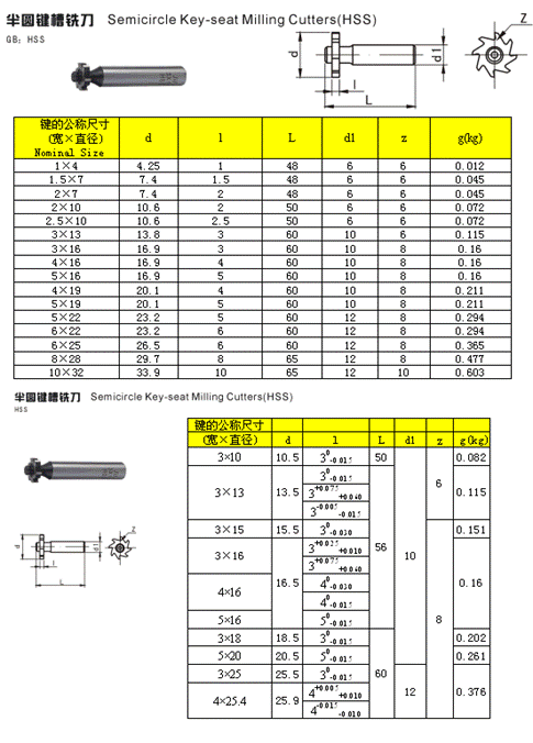 - 儀器名稱:半圓鍵槽銑刀