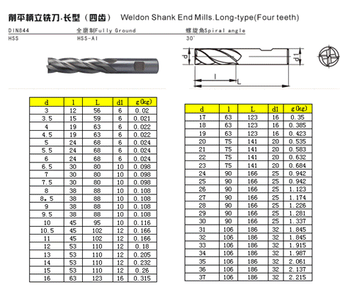- 儀器名稱:削平柄立銑刀·長(zhǎng)型(四齒)