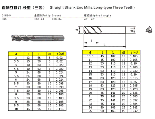 - 儀器名稱:直柄立銑刀·長型(三齒)