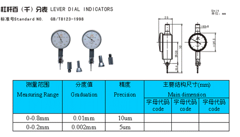 - 儀器名稱:杠桿百(千)分表