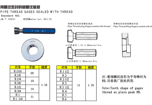 成都成量工具用螺紋密封的管螺紋量規(guī)
