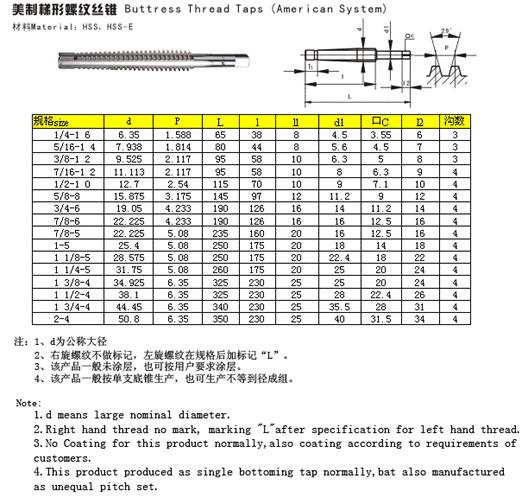 - 儀器名稱:美制梯形螺紋絲錐
