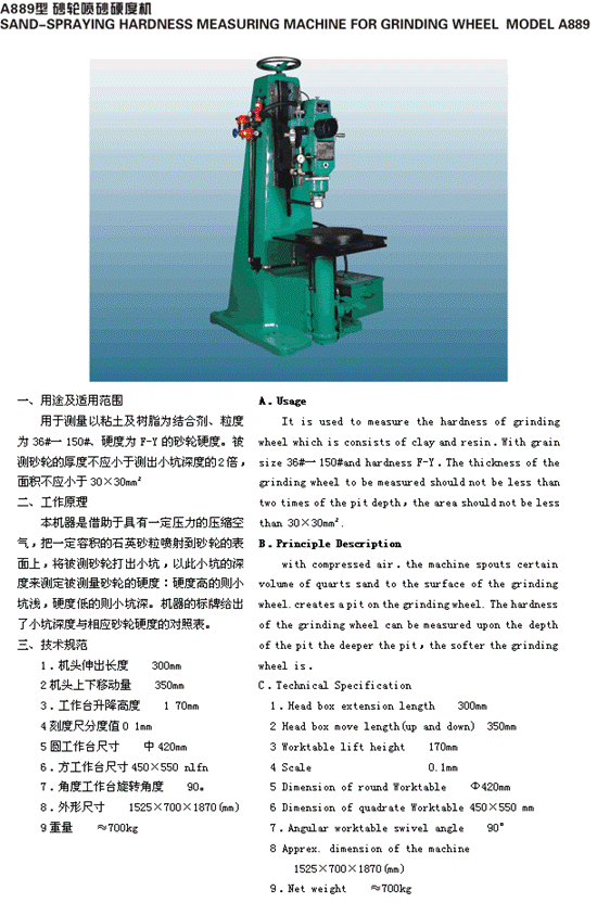 - 儀器名稱:A889型 砂輪噴砂硬度機