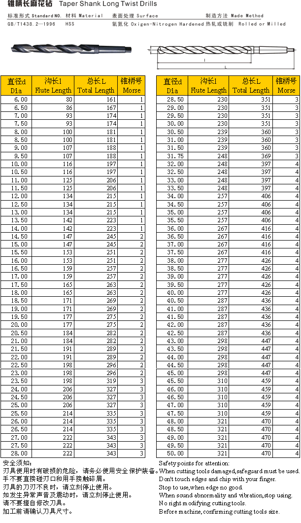 - 儀器名稱:錐柄長(zhǎng)麻花鉆