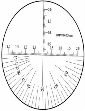 - 關(guān)鍵參數(shù):技術(shù)參數(shù): 放大倍數(shù): 25倍 物方視場 : 4mm 測量范圍:0~4mm 測量分劃值:0.05mm 角度測量:0~180° 測量精度:±1% 物方工作距離: 31.3mm 系統(tǒng)焦距 : -10 數(shù)值孔徑 : 0.088 系統(tǒng)長度: 122.6mm LED亮度: 600~1000 充電電流: 10mA 充電時(shí)間 : 1小時(shí) 放電時(shí)間 : 2小時(shí)