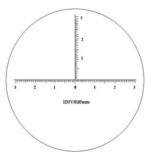 3 、本顯微鏡對準(zhǔn)觀察物在調(diào)焦清晰時,本顯微鏡刻度尺上的1小格等于實際尺寸