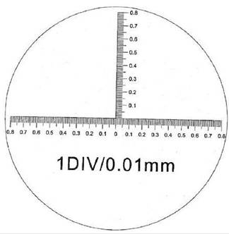 3 、本顯微鏡對準(zhǔn)觀察物在調(diào)焦清晰時(shí),本顯微鏡刻度尺上的1小格等于實(shí)際尺寸